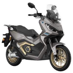 The Scorpio Electric Scooter is WW’s new GT scooter. In addition to its dynamic appearance, it is equipped with dual-channel ABS + CBS brakes and has a top speed of 120 km/h with a range of up to 180 km. Its motor is centrally located and belt drive.